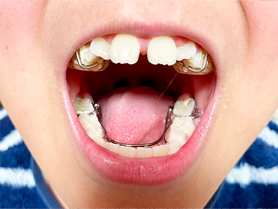 大きな口であ~ん。これが上顎と下顎の拡大装置が入った歯だよ~。